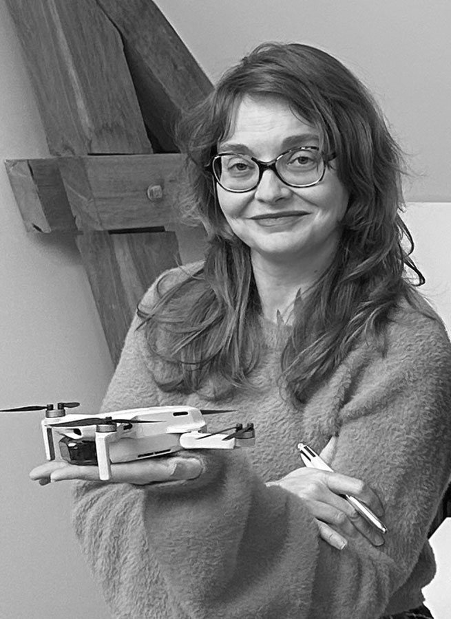 Julie est dessinatrice en architecture et assistante d’architecte. Elle débute dans les milieux culturels et artistiques, puis navigue dans de nombreux métiers d’art et d’artisanat. Tailleuse de pierre dans les carrières du sud de l’Oise, elle y fait ses premiers pas en dessin d’architecture. Elle intègre l’agence en 2019 après une formation de dessinateur DAO bâtiment et acquiert la compétence télépilote drone en 2021.