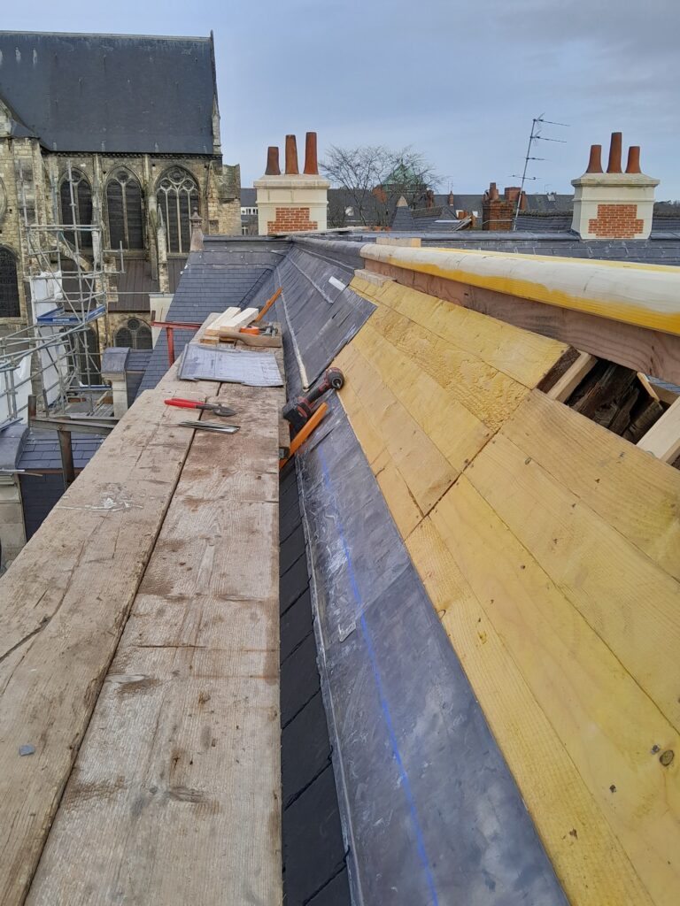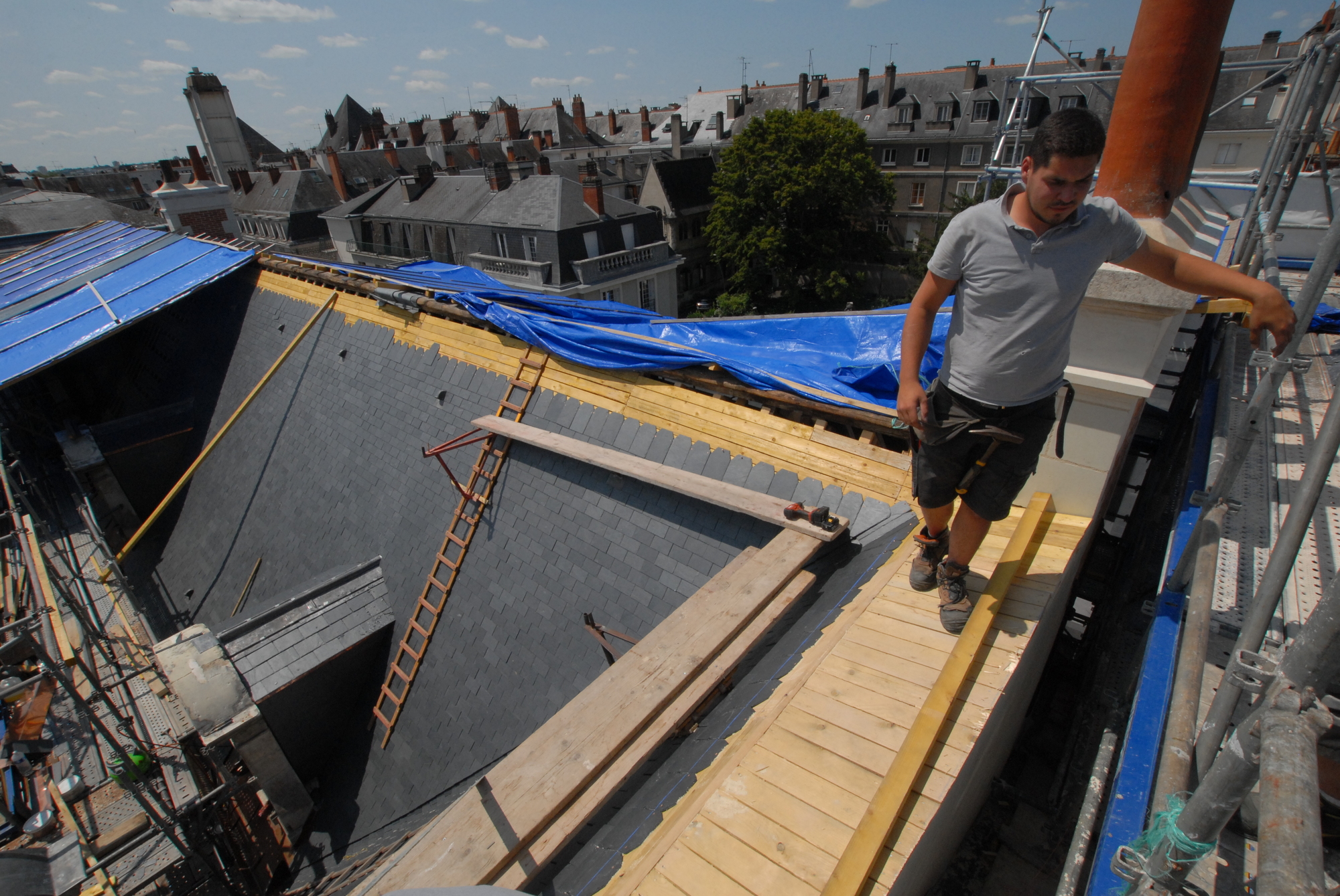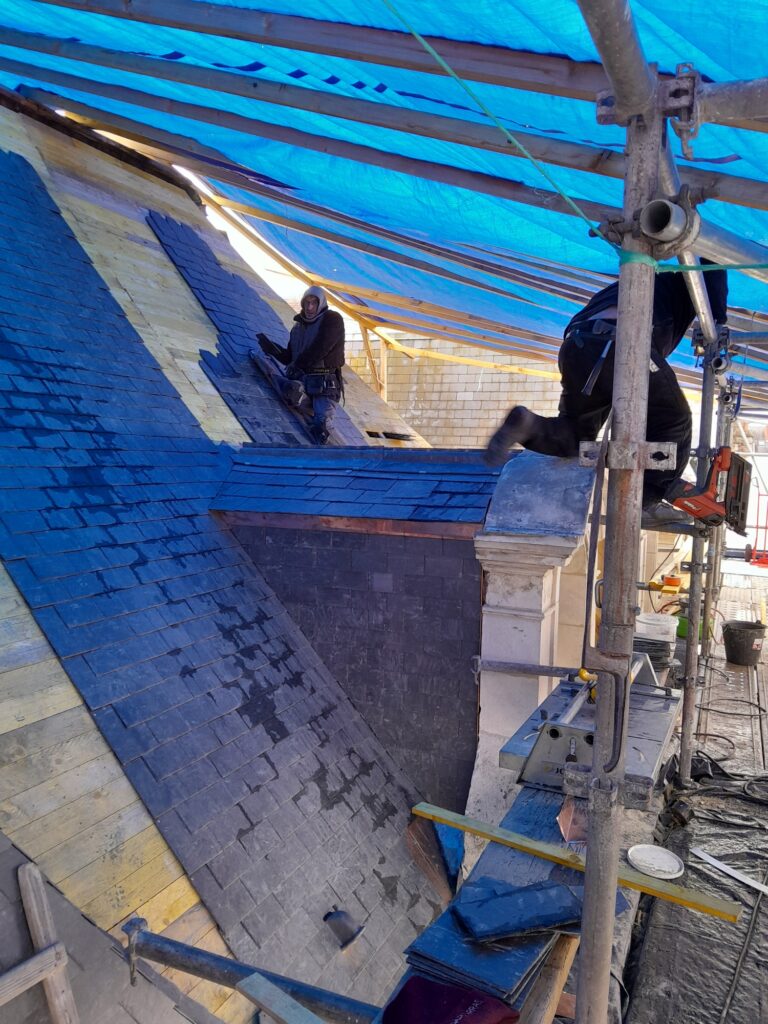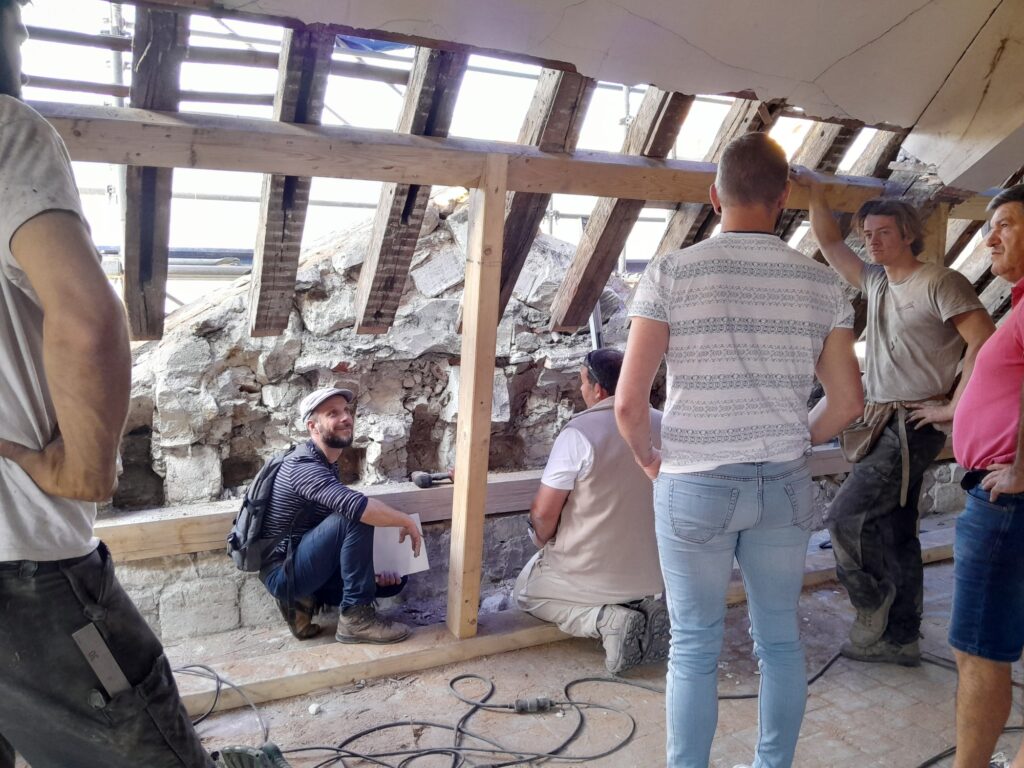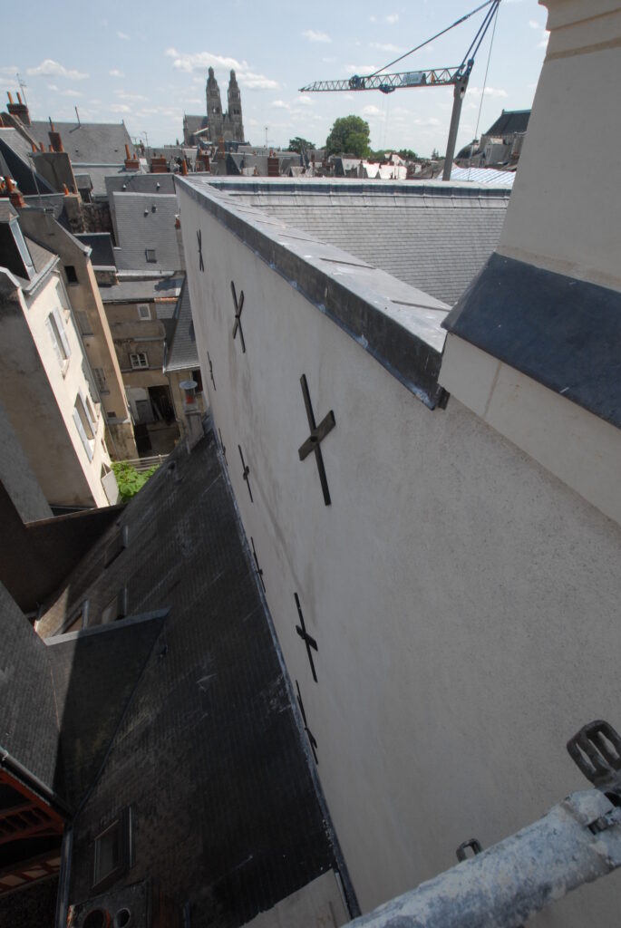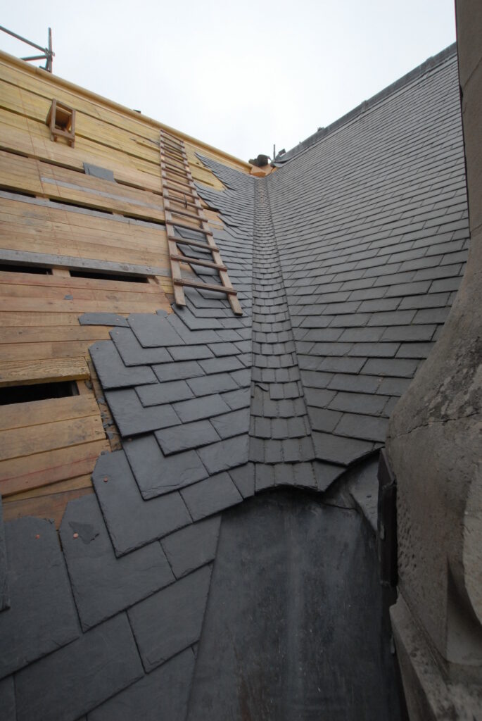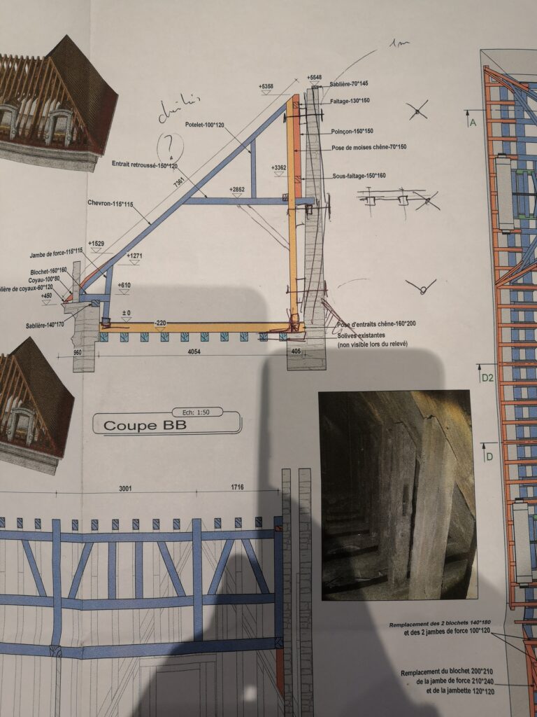 La première phase de réhabilitation, achevée en 2024, a porté essentiellement sur le clos couvert et les aspects structurels critiques du bâtiment : consolidation et restauration complète des maçonneries et des charpentes, remplacement intégral des couvertures deux ailes sur quatre et restauration ou remplacement des grandes menuiseries de la cour. Cette première campagne a permis la stabilisation et la restauration de l’édifice.