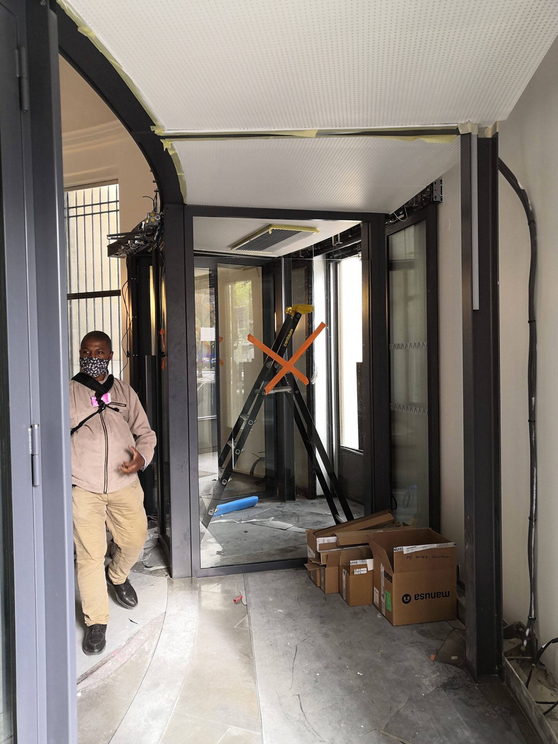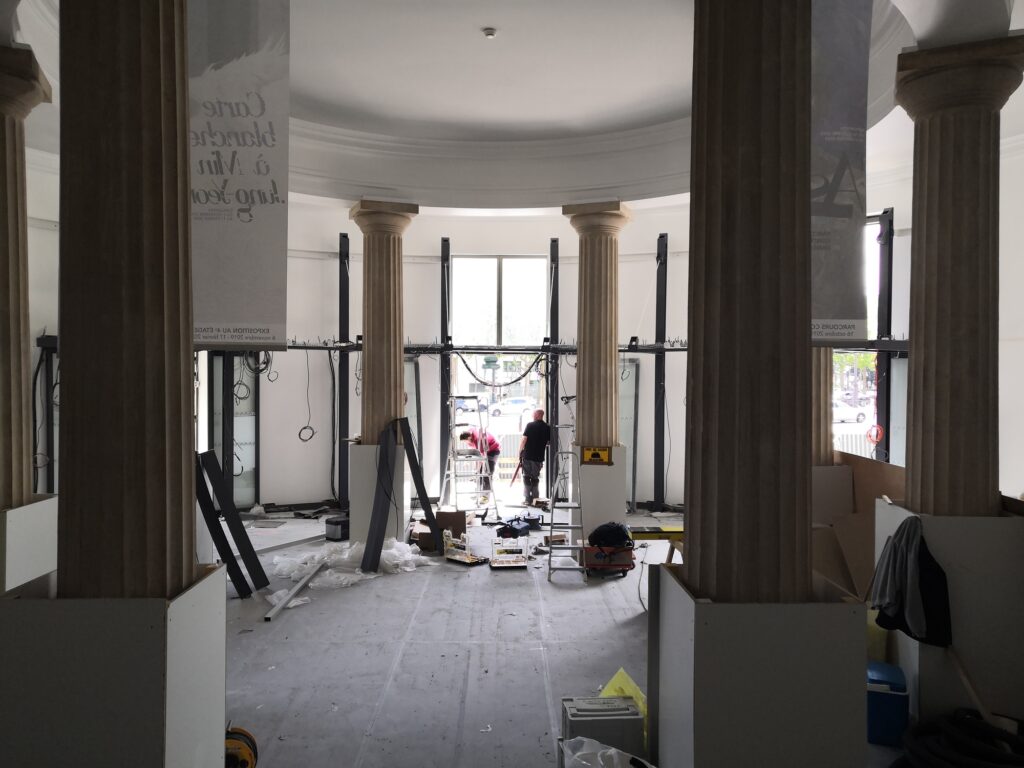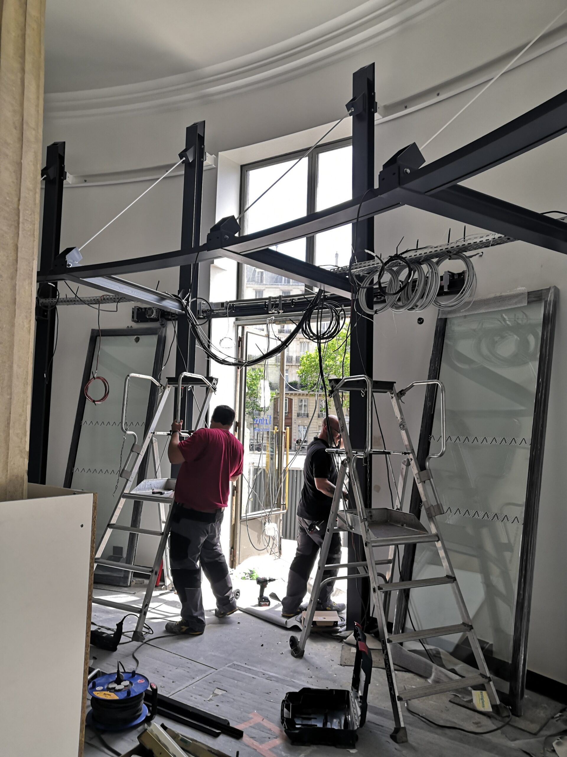 Le projet a ainsi consisté en la construction d’une charpente métallique partiellement suspendue constituée de poteaux et poutres en acier laqué revêtue de verre cintré. Cette structure multifonctionnelle permet aujourd’hui de disposer d’un nouvel espace au sein même du volume du hall.